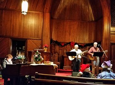 George Mattson led the holiday sing-around with a merry group of Plank Road regulars and guests.