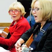 Vocal instrumental jam and sing-along with songbooks and leader