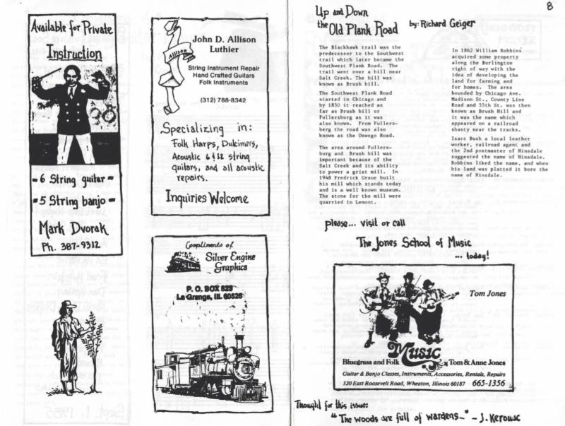 The issue included a long interview with Tom and Anne Jones, reflecting the tremendous influence the Jones Family had on folk music in the western suburbs and on Plank Road itself.