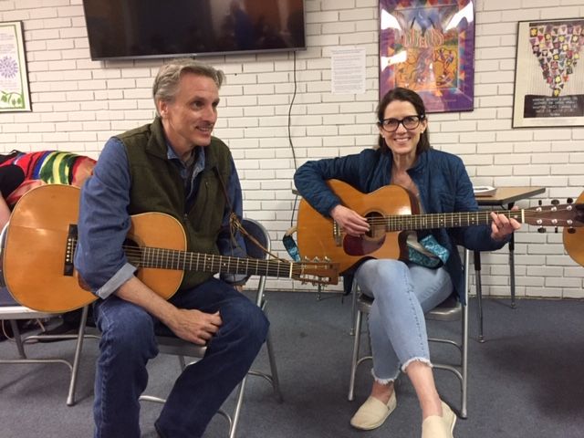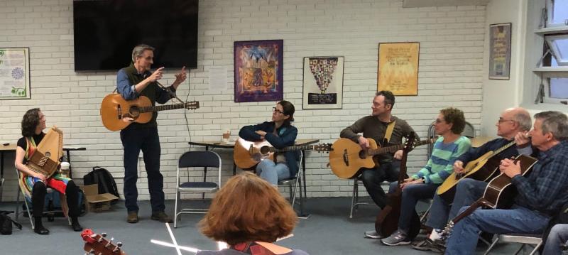 Plank Road's multi-topic workshop was held on May 11 at the First Church of Lombard. For nearly four hours Mark shared his expertise in fingerpicking, harmony techniques, chord structure, guitar riffs and runs, and his unique perspective on the art of songwriting.