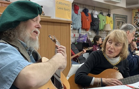 Way Street, song books were passed out and George Mattson led a packed house of strummers, pickers and singers for two hours of holiday tunes.